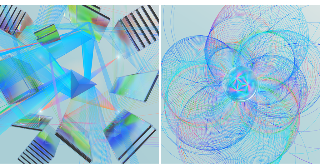 映像はプリズムを通じた光の反射・屈折をプログラミングによって再現し、人々の多様性と社会環境の変化に合わせて色と価値を融合させるという価値観を表現。その世界観に寄り添うサウンドとして、光の揺らぎや共鳴するスペクトルをピアノのカットアップを軸としてイメージした楽曲デザインを展開しました。